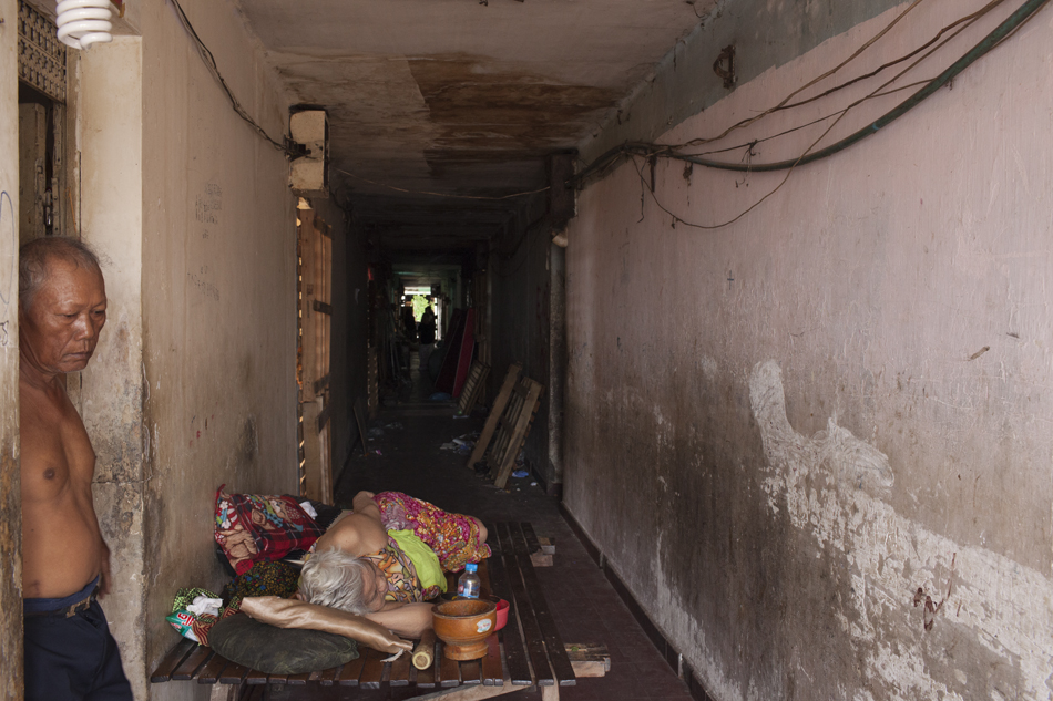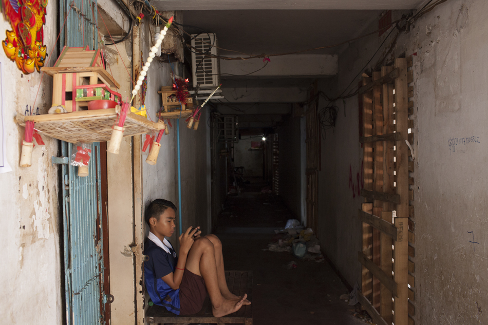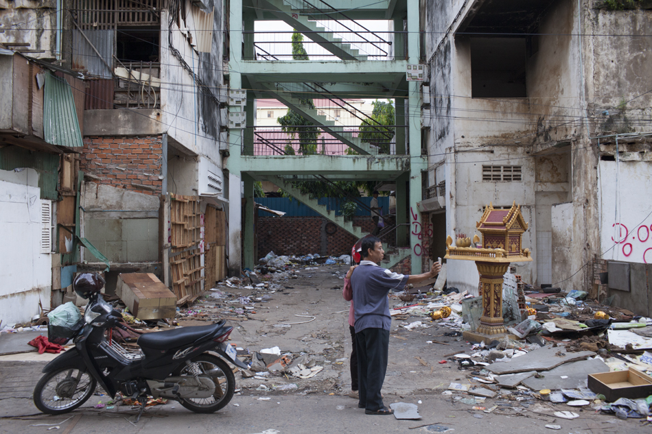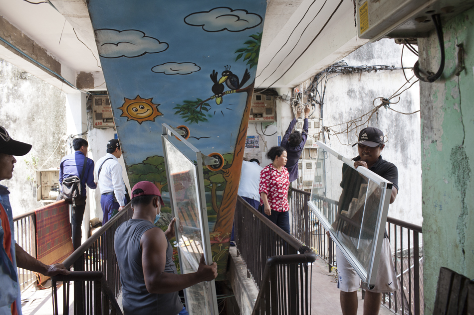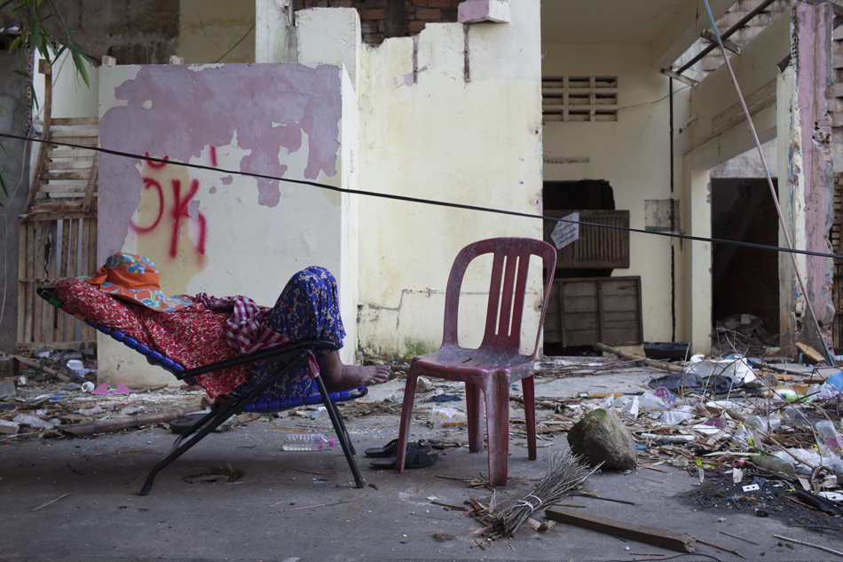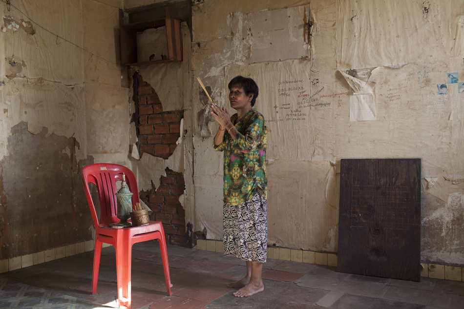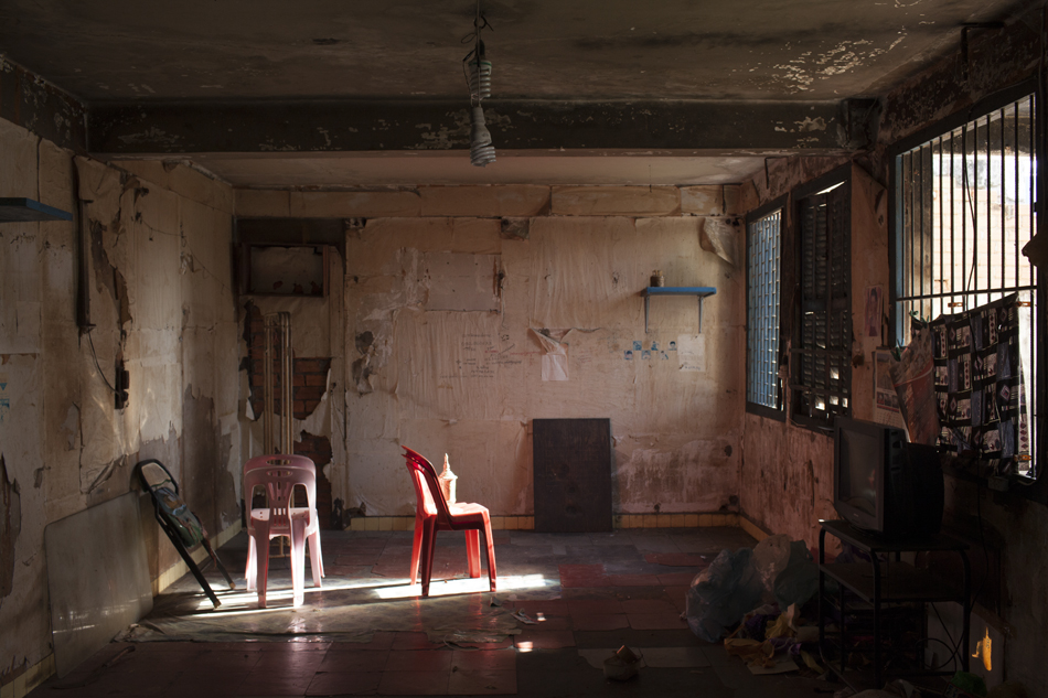 After the fall of the Khmer Rouge in 1979, the Ministry of Culture and Fine Arts gathered surviving artists and resettled them in the White Building, offering a few hundred families apartments, due to its location next to the former Preah Suramarit national theatre. In the few months leading up to the demolition of the building in July 2017, I spent time with the roughly 2500 people still living there. Through the objects people had left behind, I documented their lives in a poetic way.