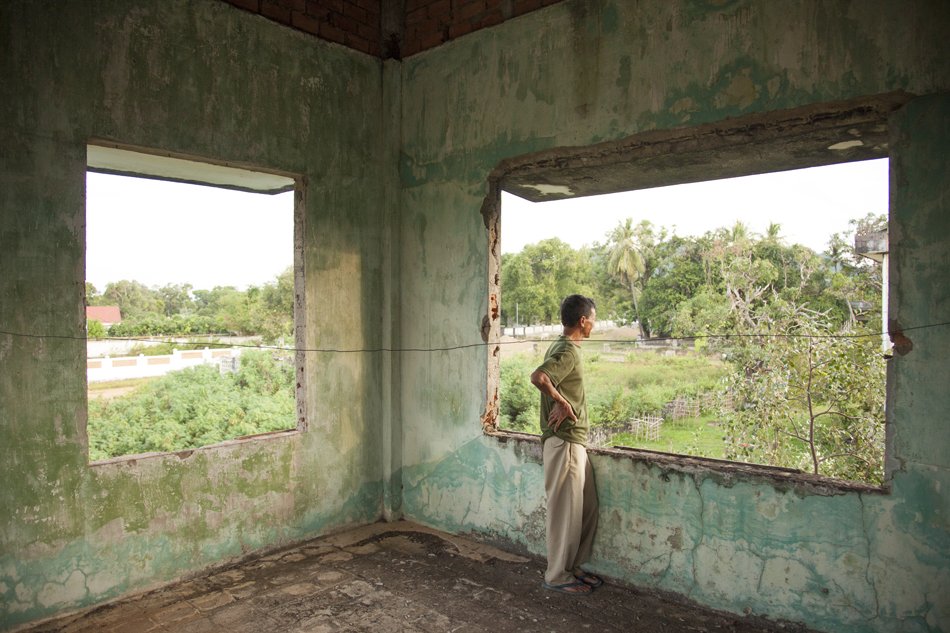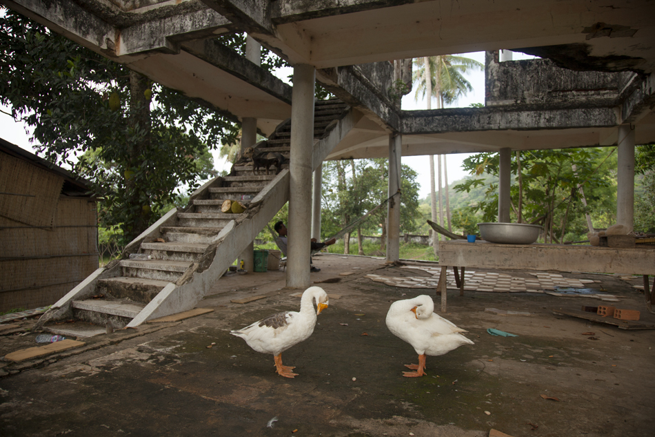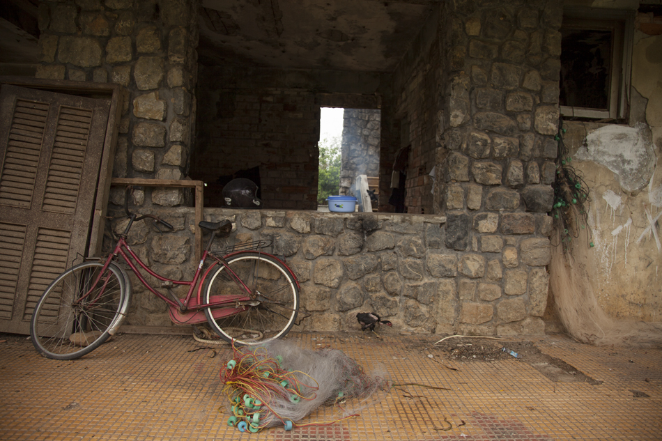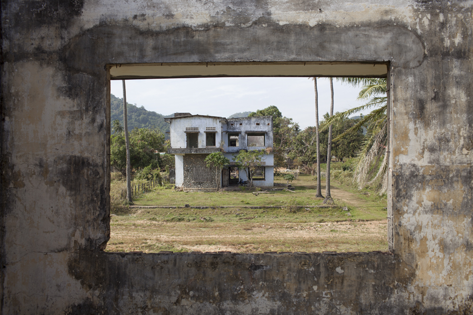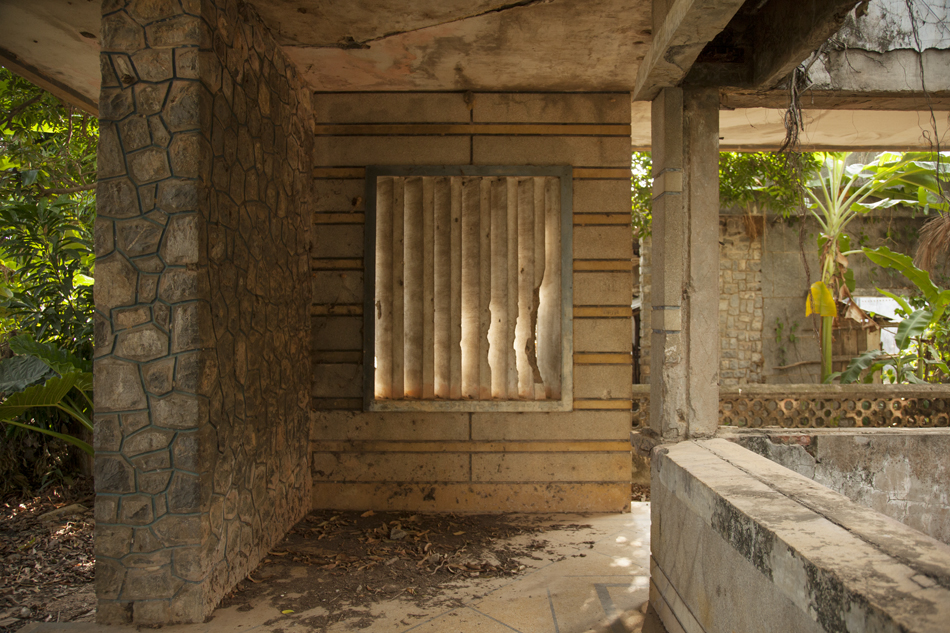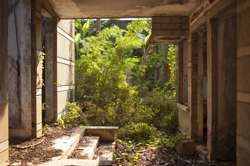 Kep was not damaged during the Vietnam War or the Khmer Rouge regime, but the city slowly slipped into a long sleep. Nature reclaimed it and the beautiful houses disappeared. Some of them were absorbed into the tropical vegetation in a way reminiscent of the temples of Angkor. After the Khmer Rouge regime, the poverty of survivors was extreme. Doors, iron-bars, tiles, windows, electric cords, and copper tubes were stripped from the villas, delivered by train from Kep to Phnom Penh and sold on to Vietnam. The ancient cottages became skeletons of the past, of the country’s Golden Age. In later times, wealthy outsiders from Phnom Penh, overseas Cambodians, and foreign buyers have acquired some of these villas, attracted by the beauty of this place. From the outside, all of these 1960’s-style villas seemed quiet and abandoned, as mentioned in those documents written by foreign travelers. But when I stepped deeper inside, I discovered that SOMEONE lives there and takes care of these houses. They are not empty but full of signs of the past mixed in with hints of the present. These houses, like stranded boats on the shore of Kep, continue to survive thanks to these guardians.