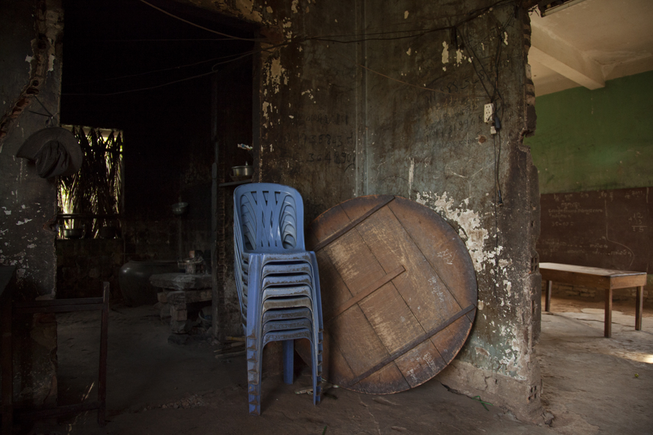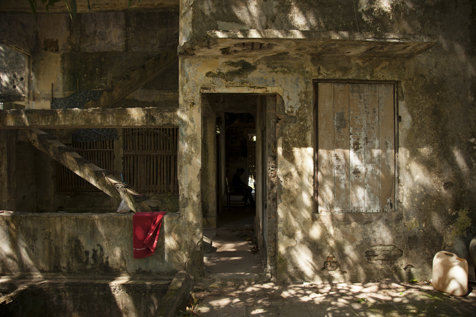 Kep was not damaged during the Vietnam War or the Khmer Rouge regime, but the city slowly slipped into a long sleep. Nature reclaimed it and the beautiful houses disappeared. Some of them were absorbed into the tropical vegetation in a way reminiscent of the temples of Angkor. After the Khmer Rouge regime, the poverty of survivors was extreme. Doors, iron-bars, tiles, windows, electric cords, and copper tubes were stripped from the villas, delivered by train from Kep to Phnom Penh and sold on to Vietnam. The ancient cottages became skeletons of the past, of the country’s Golden Age. In later times, wealthy outsiders from Phnom Penh, overseas Cambodians, and foreign buyers have acquired some of these villas, attracted by the beauty of this place. From the outside, all of these 1960’s-style villas seemed quiet and abandoned, as mentioned in those documents written by foreign travelers. But when I stepped deeper inside, I discovered that SOMEONE lives there and takes care of these houses. They are not empty but full of signs of the past mixed in with hints of the present. These houses, like stranded boats on the shore of Kep, continue to survive thanks to these guardians.