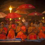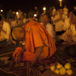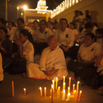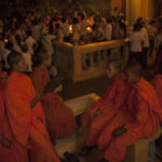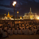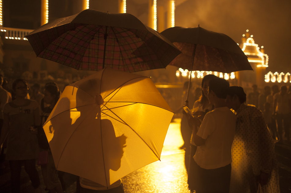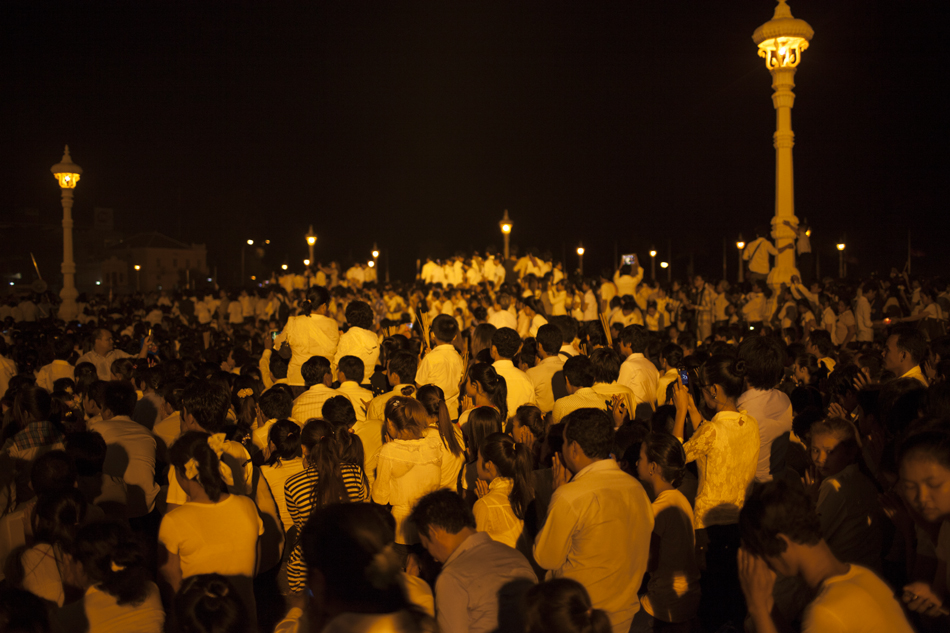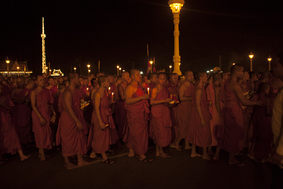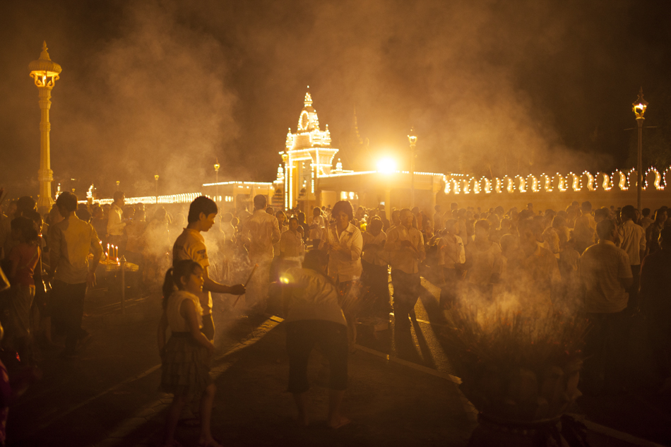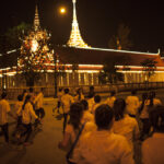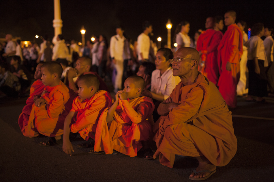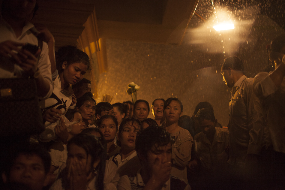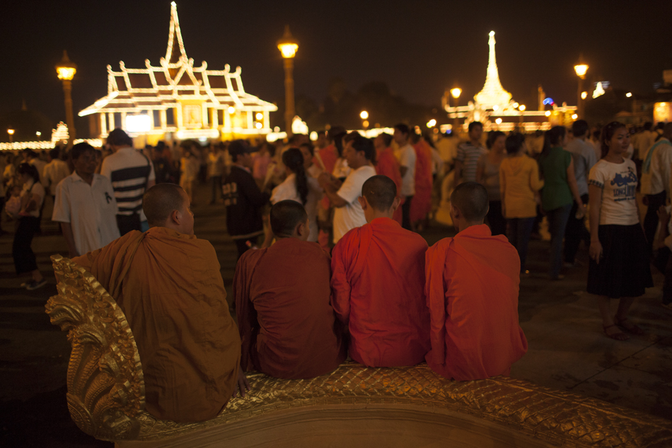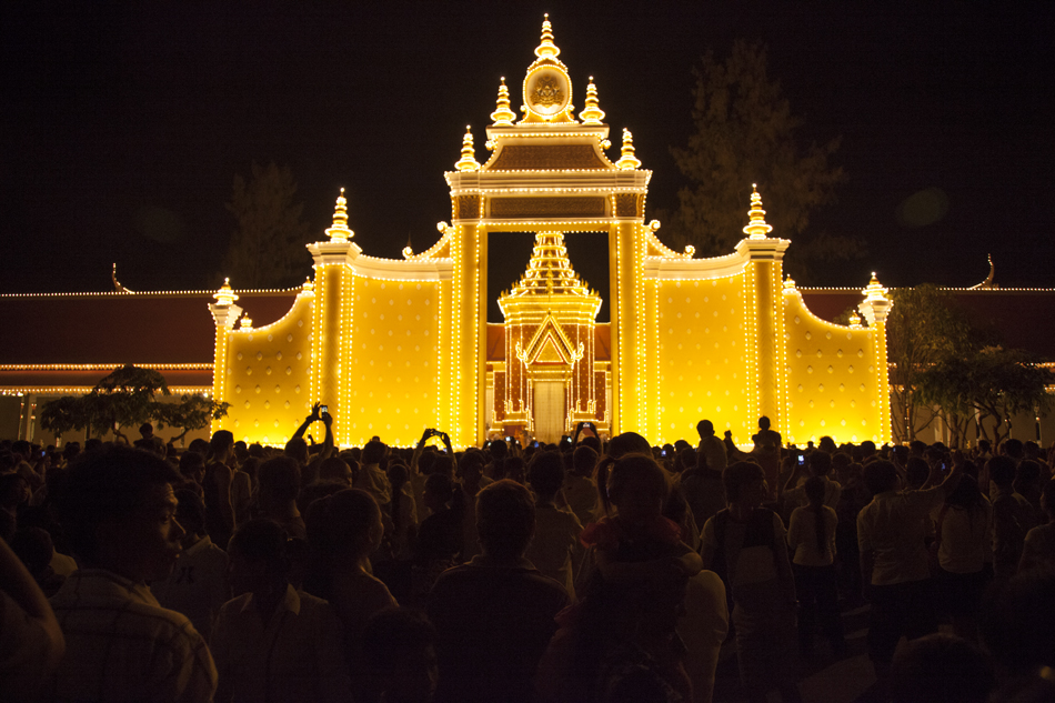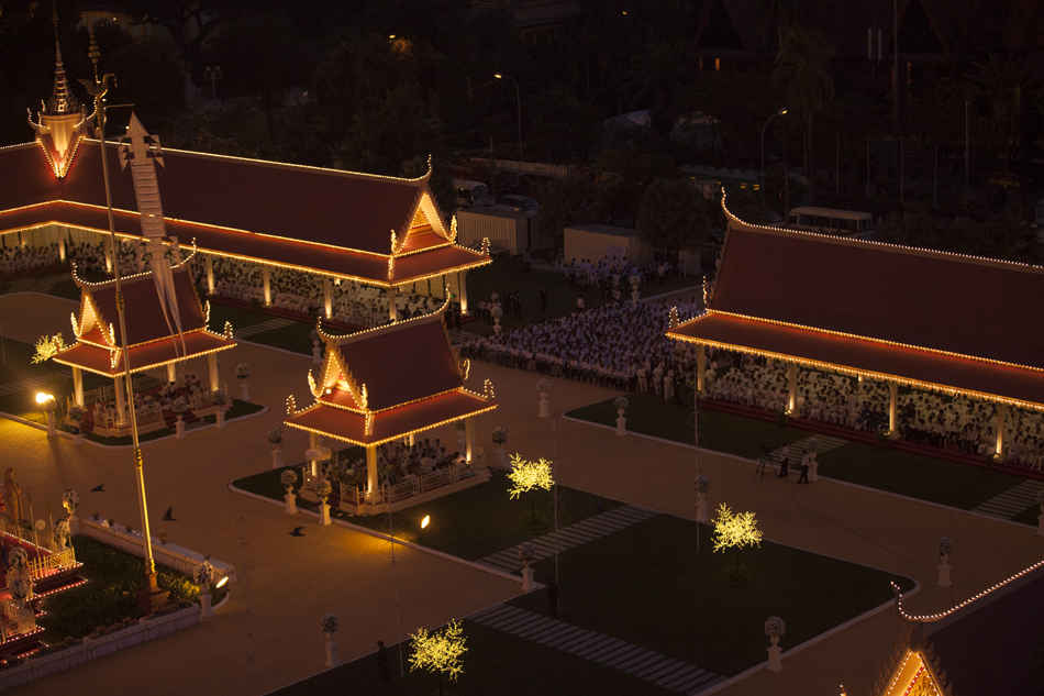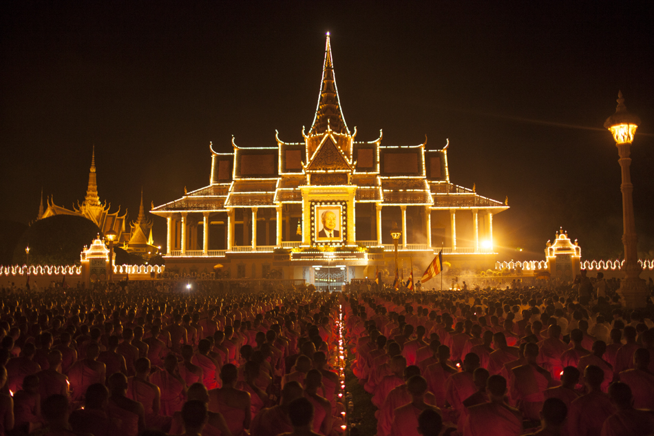 On October 20, 2012, a remarkable thing happened: without prior planning, over 5,000 Buddhist monks came together in front of the palace for meditation and chanting. The palace became a place of pilgrimage, not just for prayers for the King Father’s soul but also for peace in Cambodia and across the whole world. Rain fell like a heavenly blessing under which people kept gathering and chanting.
